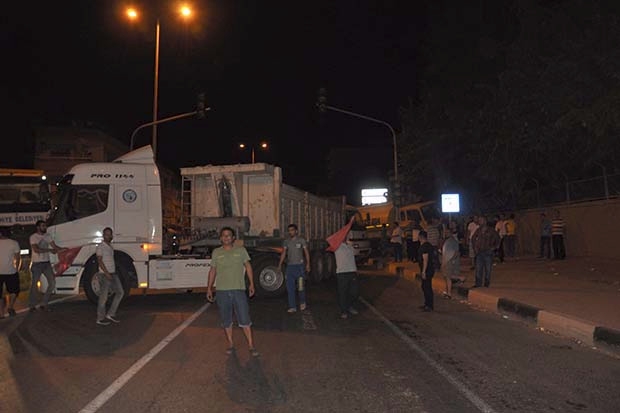 Polisin güvenlik önlemlerini en üst seviyeye çıkardığı İslahiye'de bulunan 106’ncı Topçu Alay Komutanlığı Kışlası önündeki yolun her iki tarafı da olası bir askeri hareketliliği engellemek amacıyla iş makinesi ve araçlarla oluşturulan barikat ile kapatıldı.