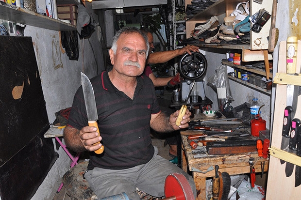 Ayakkabıcı ve bıçak ustası Hacı Türkmenoğlu ise, ”15 yıldır bıçak bileme işi yaparım ancak şimdilerde bıçak bileme işi yarı yarıya düştü. Bunun nedeni ise berber, saatçi, fotoğrafçı ve manavın bile bıçak biliyor olması. Tabi onlar bıçak bilediğini sanıyorlar ama bu yanlış. Çünkü biz bıçakçılar sıfır derece zımpara ile çalışırız. Bıçak keskin olmaz ise kurban eziyet görür. Bıçak biletmenin püf noktası sıfır zımpara olmalı, bir de özenle yapılmalı'' diye konuştu.