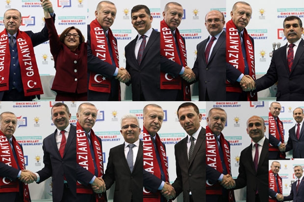 AK Parti Gaziantep Büyükşehir ve ilçe belediye başkanları kimlerin olduğunu Cumhurbaşkanı Recep Tayyip Erdoğan açıkladı. Büyükşehir dahil Gaziantep 10 belediyeden oluşurken, 3 belediye başkanı değişirken, 2 belediye başkanı MHP'ye ve 5 belediye başkanı da aynı şekilde görevlerine aday olarak, devam ettikleri belirtildi.