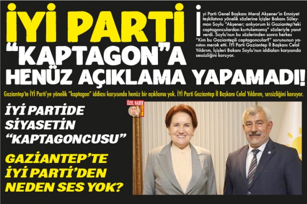 İyi Parti Genel Başkanı Meral Akşener'in Emniyet teşkilatına yönelik sözlerine İçişler Bakanı Süleyman Soylu "Akşener; anlıyorum ki Gaziantep'teki captagonculardan kurtulamamış" sözleriyle yanıt verdi. Soylu'nun bu sözlerinden sonra herkes "Kim bu Gaziantepli captagoncular?" sorununun yanıtını merak etti. İYİ Parti Gaziantep İl Başkanı Celal Yıldırım, İçişleri Bakanı Soylu'nun iddiaları karşısında sessizliğini koruyor.