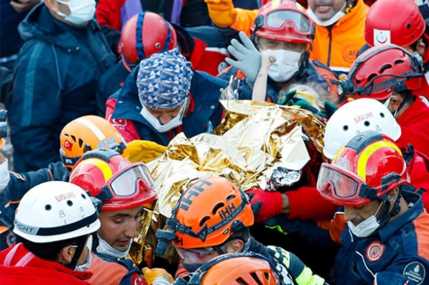Arama kurtarma faaliyetlerinin devam ettiği Bayraklı ilçesinde, depremin ardından geçen yaklaşık 65 saat sonra bir sevindirici haber daha geldi.