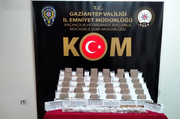 Gaziantep Emniyet Müdürlüğü’ne bağlı Kaçakçılık ve Organize Suçlarla Mücadele Şube Müdürlüğü ekipleri, Cumhuriyet Başsavcılığı koordinesinde Şahinbey ilçesin bir iş yerine operasyon düzenledi. İş yerinde yapılan aramalarda 24 bin adet boş bandrolsüz makaron, 6 bin adet dolu bandrolsüz makaron ve 2 bin 70 paket sigara kağıdı ele geçirildi. Ele geçirilen kaçak malzemelerle ilgili bir şüpheli şahıs yakalandı.