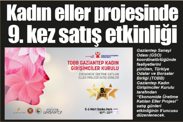 8 Mart Dünya Kadınlar Günü kutlamaları kapsamında, 05-06-Mart tarihlerinde Sanko Park Alışveriş Merkezinde gerçekleştirilecek etkinlikte kadınlar evde üretilen ürünlerini pazara sunma imkanı bulacak. Kadınların ekonomiye katılmalarına büyük katkı sunan etkinliğin açılış töreni 5 Mart 2022 Cumartesi günü saat 10.00’da protokolün katılımıyla yapılacak.