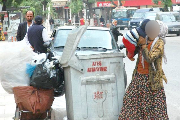 Gaziantep’te Suriyeli göçmen kadınlar başta olmak üzere onlarca kadın sabahın erken saatlerinden itibaren kundakta ki çocuklarıyla birlikte çalışma yaşamına atılıyorlar. Çöp konteynırlarından topladıkları geri dönüşüm ürünlerini satarak ev ekonomilerine katkı sağlamaya çalışan kadınlar çocuklarıyla birlikte sağlıksız şartlarda günlerini geçiriyorlar. Kent genelinde görmeye alıştığımız bu tür görüntülerin sayısı her geçen gün artarken konuyla ilgili çalışma yürüten çok sayıda kurum ise bu görüntünün önlenmesine yönelik adımları atmaya devam ediyorlar.