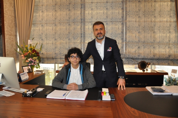 Hacı Kemal Kadooğlu Ortaokulu idareci ve öğrencileri Kadooğlu Holding’i ziyaret ederek Kadooğlu Holding Başkan Yardımcısı Celal Kadooğlu’ndan bilgiler aldılar. Hacı Kemal Kadooğlu Ortaokulu Müdürü Ekrem Kavak ve beraberindeki idareci ve öğrencilere Kadooğlu Holding bünyesinde faaliyet gösteren şirketler hakkında bilgiler veren Celal Kadooğlu öğrencilere başarının sırlarını da anlattı. Kadooğlu etkinlik kapsamında koltuğunu okul öğrencilerinden Abdurrahman Kamer’e devretti.