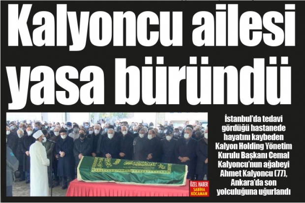 İstanbul'da akciğer rahatsızlığı nedeniyle tedavi gördüğü hastanede dün hayatını kaybeden iş insanı Ahmet Kalyoncu'nun cenazesi, Ankara'ya getirildi. Kalyoncu için cuma namazı sonrası Ahmet Hamdi Akseki Camii'nde Cenaze töreni düzenlendi.
