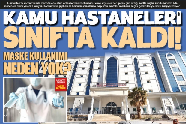 Gaziantep'te koronavirüsle mücadelede etkin önlemler henüz alınmadı. Vaka sayısının her geçen gün arttığı kentte sağlık kuruluşlarında bile mücadele alanı yetersiz kalıyor. Koronavirüs şüphesi ile kamu hastanelerine başvuran hastalar maskesiz sağlık görevlileriyle karşı karşıya kalıyor.