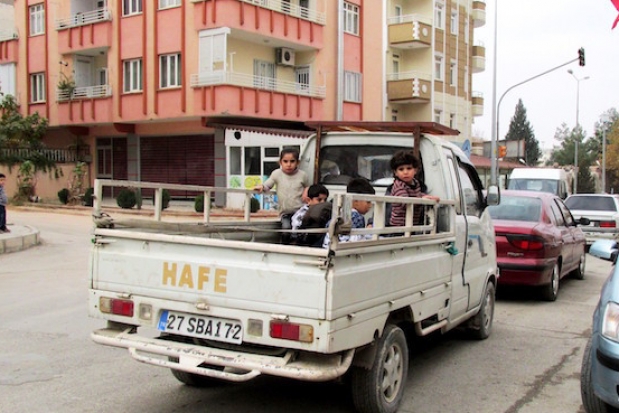 Nizip ilçesinde, sürücüsünün ismi öğrenilemeyen 27 SBA 172 plakalı kamyonetin kasasında 6 çocuğun yolculuğu trafikte dikkat çekti. Havanın soğuk olmasına aldırmadan ve bir çoğunun üzerinde montu olmadan kamyonet kasasında yolculuk yapması dikkat çekti. Araç bir süre sonra trafikte gözlerden kayboldu.