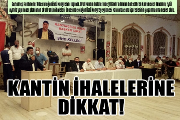 Gaziantep Kantinciler Odası olağanüstü kongresini topladı. Okul kantin ihalelerinde yıllardır adından bahsettiren Kantinciler Odasının, Eylül ayında yapılması planlanan okul kantin ihaleleri öncesinde olağanüstü kongreye gitmesi kafalarda soru işaretlerinin yaşanmasına neden oldu.