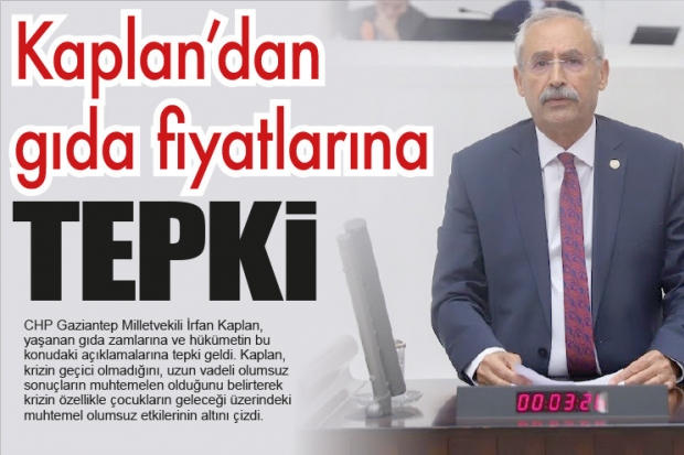 CHP Gaziantep Milletvekili İrfan Kaplan, yaşanan gıda zamlarına ve hükümetin bu konudaki açıklamalarına tepki geldi. Kaplan, krizin geçici olmadığını, uzun vadeli olumsuz sonuçların muhtemelen olduğunu belirterek krizin özellikle çocukların geleceği üzerindeki muhtemel olumsuz etkilerinin altını çizdi.