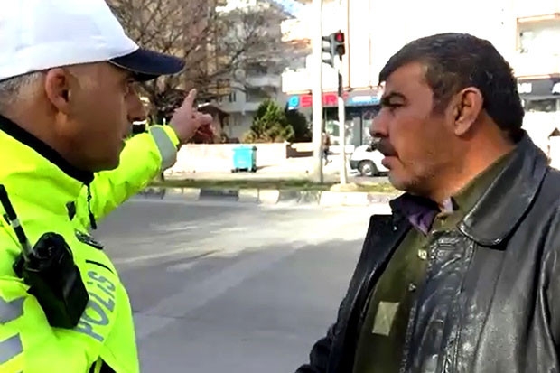 Gaziantep'te uygulama yapan polisler tarafından kırmızı ışıkta geçtiği hatırlatılan yaya, "Yaya kırmızıda da geçer, ben Avrupa'da kalmış adamım" diyerek kendini savundu.