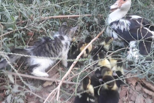 İslahiye ilçesi Beylermahallesi'nde Mustafa ve Fatma Güngör çiftine ait bahçede cep telefonu ile çekilen görüntülerde, bir kedi yavrusu ve ördek yavrularının dostluğu yer alıyor. Birbirleri ile oynayan yavruların görüntüleri görenleri şaşırttı.