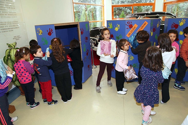 GAZİANTEP Kolej Vakfı Özel Anaokulu idareci, öğretmen, veli ve öğrencileri tarafından yürütülmekte olan 'Her çocuğun özgürce oyuncaklarla oynamak hakkıdır' projesi kapsamında okul fuayesine kurulan büyük hediye kumbaralarına çeşitli hediye paketleri atılarak köy okullarının ana sınıfı öğrencileri için toplanmasını sağlıyor.