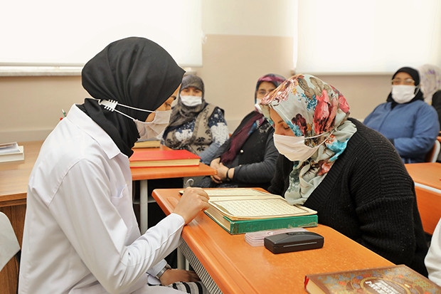Şehitkamil Belediyesine bağlı aile merkezlerinde açılan Kur’an-ı Kerim kursuna kadınlar, yoğun ilgi gösteriyor. Kursta eğitim gören özellikle ileri yaştaki kadın kursiyerler, Kur’an-ı Kerim öğrenmenin kendilerini çok mutlu ettiğini söylediler.
