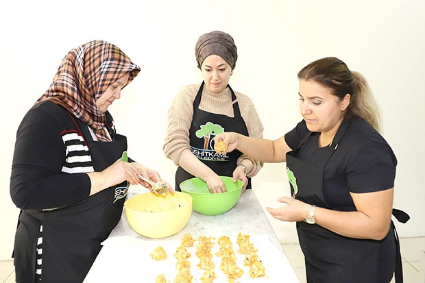 Şehitkamil Belediyesi tarafından açılan pastacılık kursuna katılan kadınlar, ustasından; pasta, kurabiye ve çeşitli hamur işlerini en mükemmel şekilde yapmayı öğreniyor. Mesleki eğitimlere yönelik kursları başarıyla tamamlayan kadınlar, öğrendikleri bilgiler ışığında isterlerse işletme açıyor isterlerse de sevdikleri için lezzetli ikramlar hazırlıyorlar.