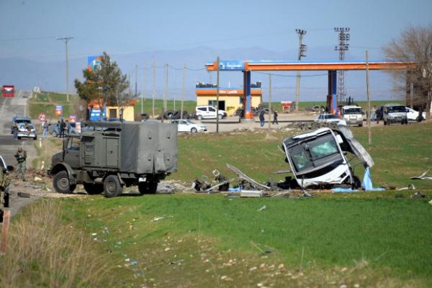 Bu arada patlamanın olduğu yolda büyük bir çukur oluştu. Bombanın şiddetiyle de parçalanan midibüs yaklaşık 15 metre uzağa fırladı.