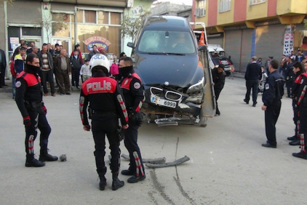 Gaziantep'te devriye gezen polis ekiplerinin şüphelenmesi üzerine durdurmak istediği lüks otomobille kovalamaca yaşandı. Kaza yapması sonucu durdurulan araçtan silah çıktı. Araçtaki 4 kişi kişi ise yaya olarak kaçtı.