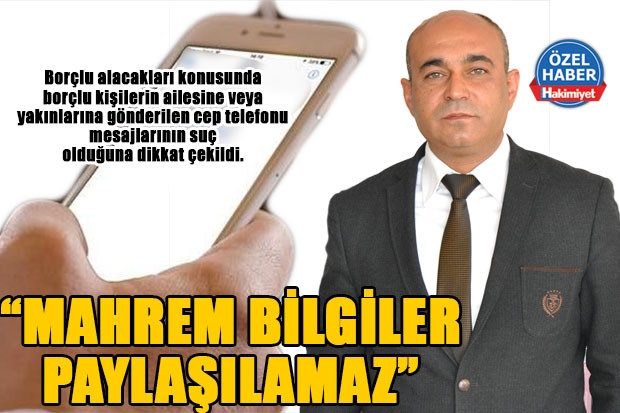 “Mahrem bilgilerin başka birisiyle paylaşılması doğru değil. Bu aynı zamanda büyük bir suç, bilgileri paylaşılan borçlu kişilerin ruh hali bozuluyor, aile ilişkileri sıkıntılı bir sürece giriyor. Bu nedenle alacaklı konumunda bulunan kurum ve kuruluşlar alacak tahsilini gerçek borçlu üzerinde gerçekleştirmeli. Borçlu vatandaşın ailesi ve yakınları taciz edilmemeli.”