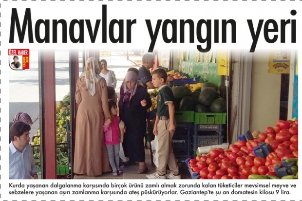 Dövizde yaşanan hareketliliğin neredeyse sona ermesine rağmen marketlerdeki tüm ürünlere gelen zamların ardı arkası kesilmiyor. Vatandaşın gözü ise pazarlardaki sebze meyve fiyatlarına çevrildi. Vatandaşlar ise fiyatların yüksekliğinden şikayet etti. Meyve fiyatları ile ilgili konuşan esnaf ise fiyatlarda geçen yıla göre yüzde yüzlük bir artış yaşandığını, ilerleyen süreçte de fiyatların düşmesini beklemediklerini söyledi. Sezonluk sebze ve meyveler raflarda yerini aldı. Fakat bu yıl geçen yıllardan farklı olarak sofralarda kendine yer bulan gıdaların fiyatları tüketicinin cebini zorluyor. Bunda, kurdaki artışa bağlı olarak çiftçinin başlıca maliyet kalemlerinden mazot ve gübrenin fiyatının yükselmesi etkili oldu. Ayrıca, geçen yılki üretim adedinin yüksek olması neticesinde mahsulünü ucuza satan çiftçinin, bu yıl aynı ürünleri ekmemesi de bazı gıdalarda hem talebi hem de fiyatı artırdı. Şiddetli yağışlar ve dolu gibi olumsuz hava şartları ile gıda hastalıklarının da, fiyat artışının diğer etkenleri olduğu belirtiliyor.