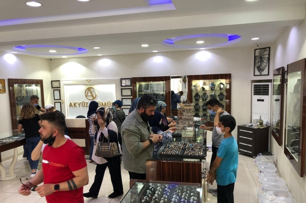Mardin'de faaliyet gösteren Akyüz Gümüşçülükte hafta sonu müşteri yoğunluğu yaşanıyor.