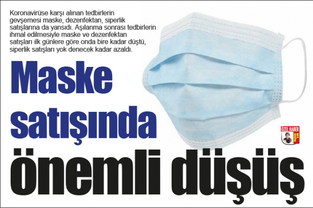 Koronavirüse karşı alınan tedbirlerin gevşemesi maske, dezenfektan, siperlik satışlarına da yansıdı. Aşılanma sonrası tedbirlerin ihmal edilmesiyle maske ve dezenfektan satışları ilk günlere göre onda bire kadar düştü, siperlik satışları yok denecek kadar azaldı.