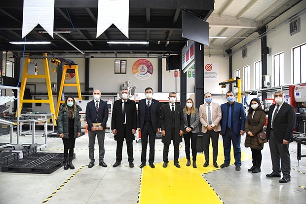 Toplantı sonrası Model Fabrikayı gezen heyet, yürütülen çalışmalar hakkında yetkililerden bilgi aldı.