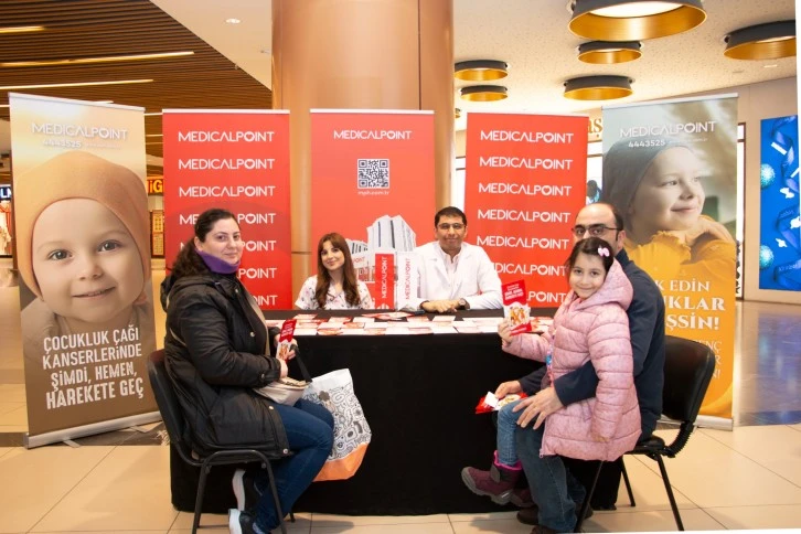 Medical Point Gaziantep Hastanesi Çocuk Sağlığı ve Hastalıkları Uzm. Dr. Baver Demir gelen ziyaretçilerin sorularını yanıtladığını kaydetti. Çocukluk çağı kanserlerinden korunmak için ziyaretçilere broşür dağıtıldığını ifade ederek, çocukluk çağı kanserleri ile ilgili vakaların Çocuk Hematolojisi ve Onkoloji bölümüne yönlendirildiğini belirtti.