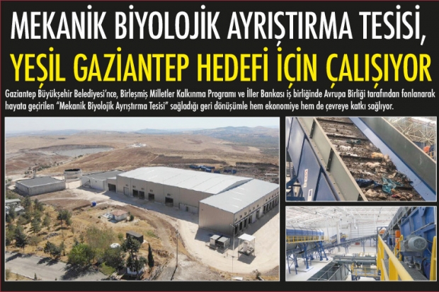 Gaziantep Büyükşehir Belediyesi’nce, Birleşmiş Milletler Kalkınma Programı ve İller Bankası iş birliğinde Avrupa Birliği tarafından fonlanarak hayata geçirilen “Mekanik Biyolojik Ayrıştırma Tesisi” sağladığı geri dönüşümle hem ekonomiye hem de çevreye katkı sağlıyor.