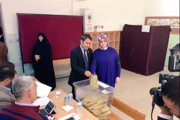 AK Parti Gaziantep milletvekili adayı Ali Şahin, Nizip İlçesi Hatice Seyit Çeker Ortaokulunda eşi ile birlikte oyunu kullandı.