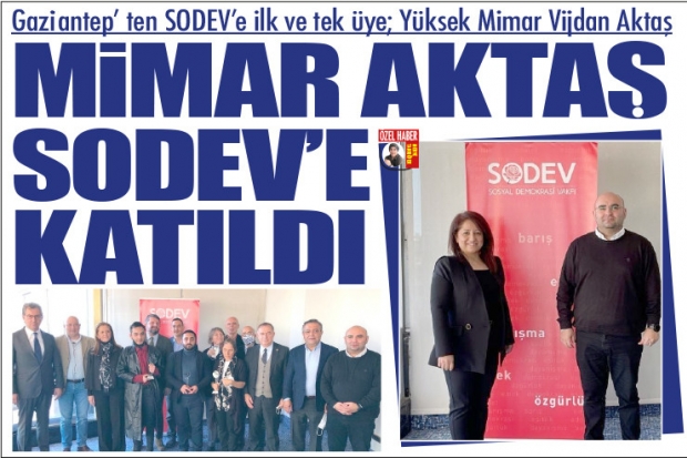 Sosyal Demokrasi Vakfı (kısaca SODEV),gerçekleştirmiş olduğu 28.genel kurulunda, her yıl sadece 20 seçkin üye kabul ettiği oluşumuna,Gaziantep’ten Yüksek Mimar-İç Mimar Vijdan Aktaş’ı seçkin üyelerinin arasına kattı. Oğuzkağan Salıcı,Selin Sayek Böke,Ekrem İmamoğlu,Canan Kaftancıoğlu,Mahir Polat,Tunç Soyer ,Onursal Adıgüzel,Orhan Sarıbalı,Fikri Sağlar,Ercan Karakaş ,Zeydan Karalar gibi önemli isimlerin yer aldığı SODEV’e Gaziantep’ten ilk ve tek üye olarak seçilen Aktaş,kendisine teklif edilen bu anlamlı sorumluluk için teşekkür edip, Gaziantep’i de en iyi şekilde temsil edeceğini bildirdi.