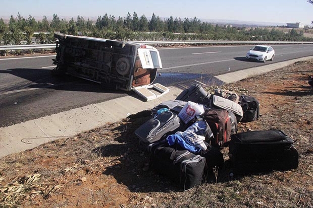 Kaza, bugün öğle saatlerinde Şanlıurfa- Mardin otoyolunun 35’inci kilometresinde meydana geldi. Gaziantep’in Nurdağı İlçesi'nden, Şırnak'ın Cizre İlçesi'nden geçen otoyol tünelinde çalışmak üzere yola çıkan ve sürücüsü tespit edilemeyen 02 EF 762 plakalı minibüsün ön sol lastiği, Harran Üniversitesi'nin Osmanbey Kampusü yakınlarında patladı. Kontrolden çıkarak devrilen minibüsteki sürücü ile yanında bulunan 12 işçi yaralandı.