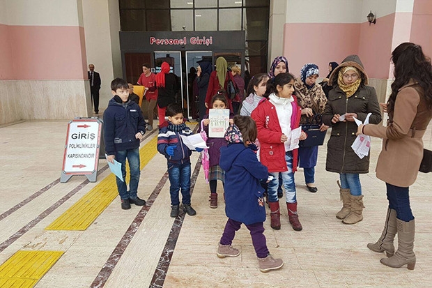 Kilis Belediyesi konaklarında eğitim ören minik öğrenciler Kilis Devlet Hastanesinde yatan yaralı askerleri ziyaret ederek, kendi elleriyle yaptıkları resimleri ve mektupları teslim etti.