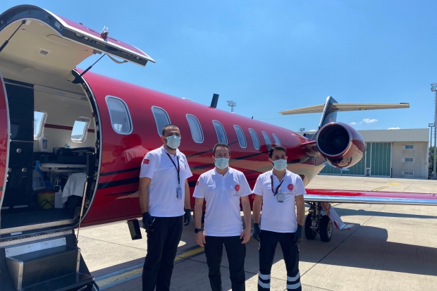 Minik Nura İsa’nın kalp rahatsızlığı olduğunu belirten Acil Tıp Uzmanı Doktor Güven Kırımlı, “İstanbul Atatürk Havalimanı’ndayız. Gaziantep’e doğru yola çıktık. Yeni doğan, kalp rahatsızlığı olan bir bebeğimiz var. Orada ilk müdahale yapılmış, solunum desteğine alınmış ama Kalp Cerrahisi ameliyat ihtiyacı olduğundan dolayı hastamızı İstanbul’a getirmeye gidiyoruz. Genel durumu orta ve solunum cihazına bağlı bir durumda. Bebeğimiz 5 günlük ve doğuştan kalp hastası olarak doğdu. Doğduğu andan itibaren solunum cihazına bağlanmış” ifadelerini kullandı.