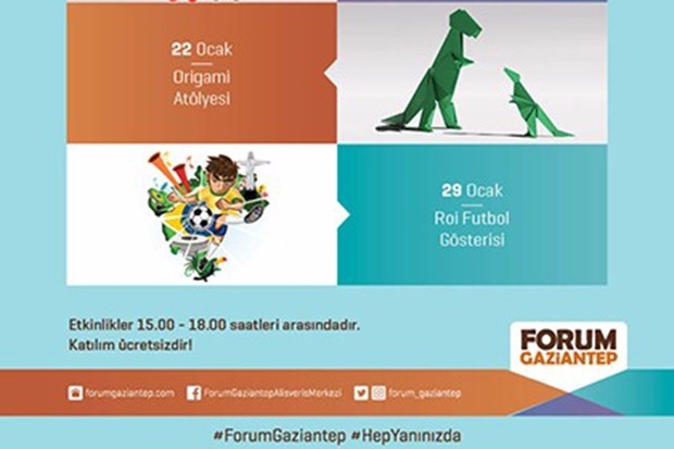 Ocak doğumlu çocukların yaş günlerini kutlayan Forum Gaziantep Çocuk Kulübü, ocak ayına doğum günü partisiyle girecek. Kulübün bu ay ki programında ise İpli Kukla Gösterisi, Origami Atölyesi ve Rol Futbol Gösterisi var.