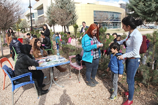 Kreş ve Anaokulu Öğrencileri tarafından, Drama Eğitmeni Müyesser İncenacar rehberliğinde yapacakları “Çocuk hakkımı istiyorum” projesinin ilk adımını, ‘resimlerle başlayalım’ ile bugün, büyüklerden isteklerini resimleyip, yazarak oluşturdukları keseleri, Üniversite öğrencilerine dağıtarak gerçekleştirdi. Proje hakkında bilgi veren Kreş ve Anaokulu Müdürü Güler Boran, “Keselere, çocuklar hayallerini, büyüklerden isteklerini koydular. Projenin ikinci adımı, panel şeklinde olacak. Üniversitemizin büyük, küçük öğrencileri bir araya gelerek sohbet ve beyin fırtınası yapacaklar” şeklinde konuştu.