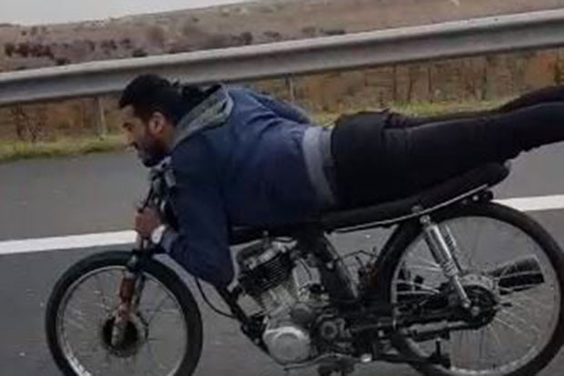 Motosiklet sürücüleri hem kendilerini hem de diğer sürücüleri tehlikeye atacak şekilde seyir etti. Kullandıkları motosikletlerin üzerinde boylu boyunca uzanarak yolculuk etti.