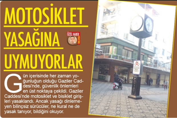 Çok sayıda alışveriş merkezi, kuyumcu ve iş yerinin bulunduğu çarşıyı, motosiklet ve bisiklet girişleri yasak. Gaziantep’in en canlı noktası Gazilere, bundan böyle motosiklet ve bisiklet alınmayacaktı. Aksi takdirde para cezası kesilecek, kurallara uymayanlar 220 lira para cezasına çarptırılacak. Ayrıca motosiklet ve bisiklete al konulacak.