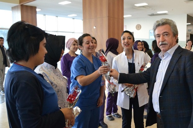 Genel Direktör Uzm. Dr. İdris Yıldırım da tıbbi ve idari birimleri ziyaret ederek bayanların 8 Mart Dünya Kadınlar Gününü kutladı.Hemşirelik hizmetlerindeki kutlamalarda ise Başhemşire Selma İğneler hastanede çalışan hemşirelerin günü kutlandı.
