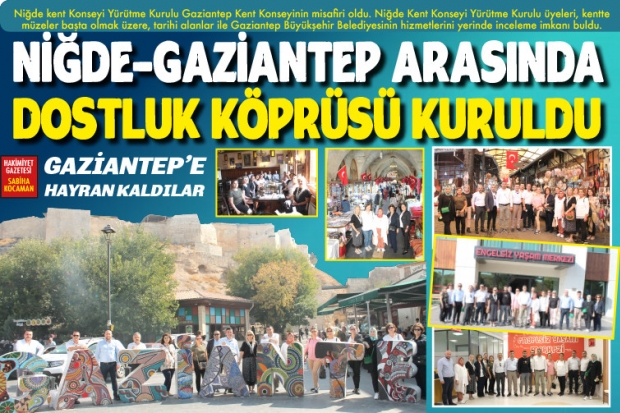 Gaziantep Kent Konseyi "GÜÇLÜ BİR KENT İÇİN KADINLAR EL ELE NİĞDE KADIN BULUŞMASI" toplantısına katılmıştı. Başarılı bir şekilde sona eren toplantının ardından Niğde Kent Konseyi Yürütme Kurulu iadeyi ziyarette bulundu. Niğde Kent Konseyi Başkanı Prof. Dr. Mutlu Başaran Öztürk, eşi Gülin Öztürk ve Yürütme Kurulu Üyeleri Gaziantep'te 3 gün boyunca önemli ziyaret ve gezilerde bulundu. Ziyaretlerde Niğde Kent Konseyi Yürütme Kurulu üyelerine Gaziantep Kent Konseyi Kadın Meclisi Başkanı Ayşe Teymur eşlik etti.