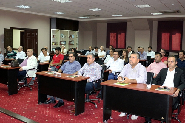Konuşmaların ardından Nizip Sosyal Güvenlik Merkezi Müdürü Sinan Bayram tarafından mevzuat ve uygulamalarla ilgili katılımcılara sunum yapıldı.