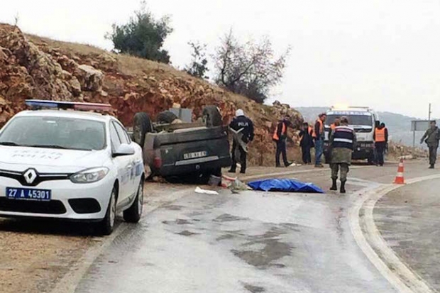 Gaziantep'in Nurdağı İlçesi'nde, sürücüsünün kontrolünü kaybetmesiyle devrilen kamyonetteki 41 yaşındaki Hazime Saygılı öldü, 4 kişi yaralandı.