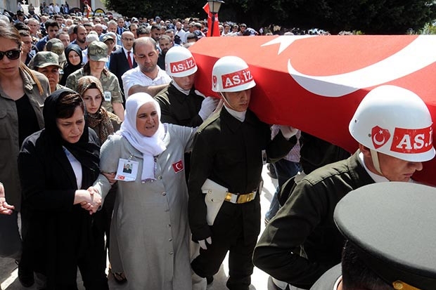 GAZİANTEP'in Oğuzeli ile Kilis'in Elbeyli İlçesi arasındaki Akçakoyunlu Bölgesi'nde, mayın imha çalışması yaparken meydana gelen patlamada şehit düşen 25 yaşındaki İstihkam Uzman Çavuş Burak Uçar, memleketi Adana'da gözyaşlarıyla toprağa verildi. Oğlunun şehit olduğu hacda öğrenen anne Zeynep Uçar, geldiği cenaze töreninde asker şapkasını taktı, cenaze namazı kıldı.