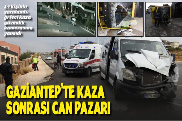 Gaziantep’te halk otobüsü ile öğrenci servisinin çarpışması sonucu 14 kişi yaralandı. Kaza anına ait görüntüler güvenlik kameralarına anbean yansıdı.