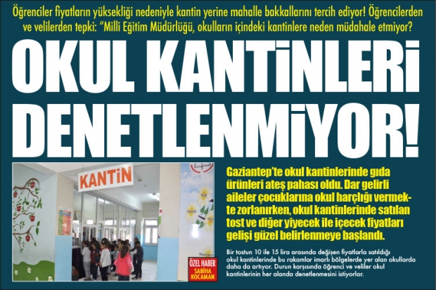 Gaziantep'te okul kantinlerinde gıda ürünleri ateş pahası oldu. Dar gelirli aileler çocuklarına okul harçlığı vermekte zorlanırken, okul kantinlerinde satılan tost ve diğer yiyecek ile içecek fiyatları gelişi güzel belirlenmeye başlandı. Bir tostun 10 ile 15 lira arasında değişen fiyatlarla satıldığı okul kantinlerinde bu rakamlar imarlı bölgelerde yer alan okullarda daha da artıyor. Durun karşısında öğrenci ve veliler okul kantinlerinin her alanda denetlenmesini istiyorlar.