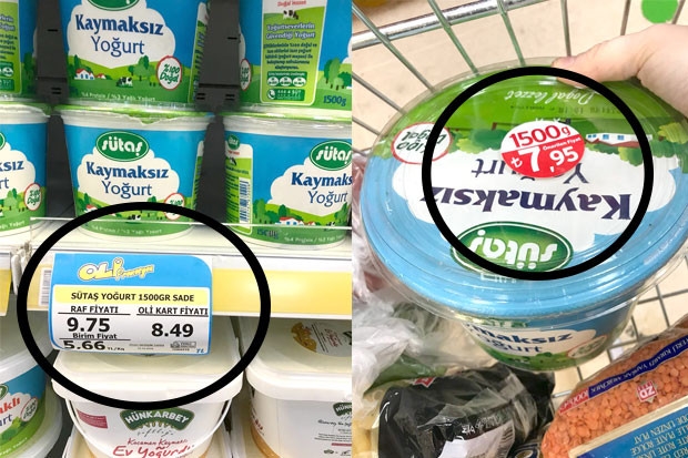 Gaziantep’te yerleşik Oli Marketler Zincirinin bazı mağazalarında ürün fiyatları rafta farklı üründe farklı bir şekilde göze çarpıyor. Ürünlerin kendi ve raf fiyatlarının birbirini tutmaması karşısında ise tüketiciler bu duruma isyan ediyorlar. Daha önce de Oli’nin bazı mağazalarından benzer durumlar yaşanmıştı.