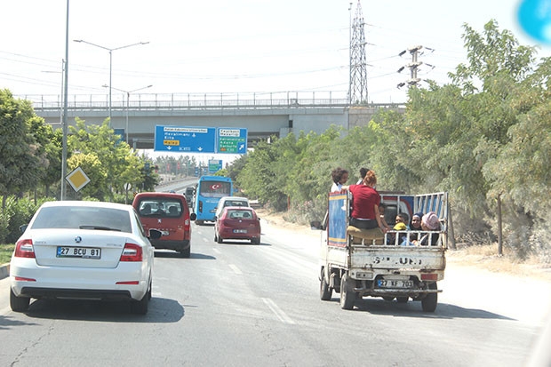 Gaziantep-Oğuzeli yolu arasında seyir eden 27 KF 703 plakalı mini kamyonetin arkasında tehlikeli yolculuk objektiflere yansıdı. Kuralları hiçe sayarak trafikte ilerleyen kamyonet sürücüsü kasasında bulunan vatandaşların can güvenliğini hiçe saydı.