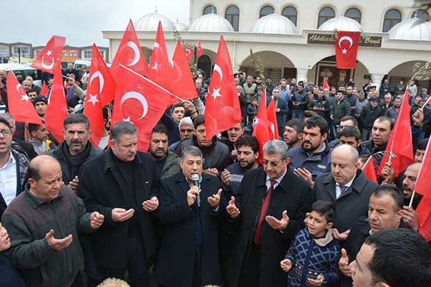 Gaziantep Oto Sanayi esnafları, Türk Silahlı Kuvvetleri'nin Afrin’e düzenlediği Zeytin Dalı Harekatı'na destek vermek amacıyla kepenk kapattı. Abdülkadir Konukoğlu Cami'de cuma namazını kılan esnaf, namaz sonrası tekbirler getirdi. Mehmetçikler için dua eden esnaflar, sağ salim geri dönebilmeleri için 6 koyun kesti. Esnaflar, ellerinde Türk bayrağı ve zeytin dalları ile "Vatan sana canım feda. Şehitler ölmez, vatan bölünmez" sloganları attı. Şehitler için saygı duruşunda bulunan esnaf, İstiklal Marşı'nı okudu.