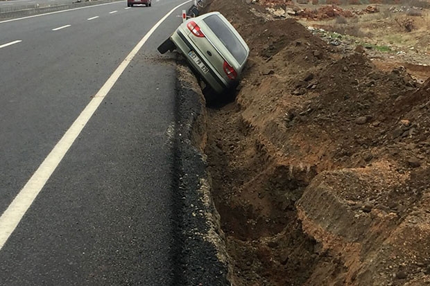 Gaziantep'te seyir halinde bulunan bir otomobil, yol çalışması için kazılan kanala düştü.