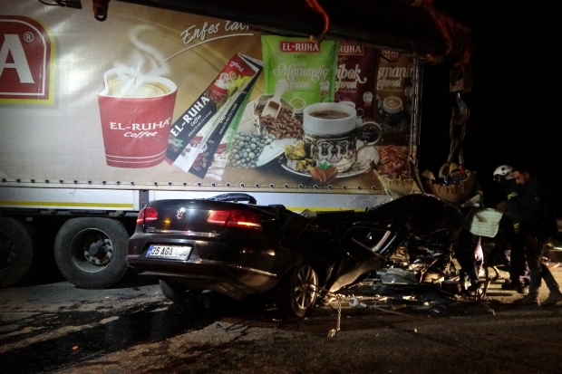 Kaza, Gaziantep-Kahramanmaraş yolunda meydana geldi. Edinilen bilgilere göre, sürücüsü belirlenemeyen 35 AGA 480 plakalı Volkswagen Passat marka otomobil aynı istikamette seyir halindeki tıra arkadan çarptı. İhbar üzerine olay yerine çok sayıda itfaiye, ambulans ve trafik ekipleri sevk edildi. Kazada kimliği belirlenemeyen otomobil sürücü ve yanında bulunan arkadaşı hayatını kaybetti. Hurdaya dönen araçtan ölenlerin cansız bedenleri itfaiyenin uzun uğraşları sonucu çıkartılabildi. Kazayla ilgili inceleme başlatılırken cenazeler adli tıp morguna kaldırıldı.
