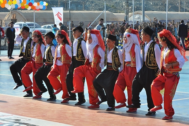 Kamplarda yaşam sürdüren Suriyeli çocuklar, mendil kapmaca, seksek, yöresel halk oyunları oynayarak doyasıya eğlendiler. Aile ve Sosyal Politikalar Bakan Yardımcısı Mehmet Ersoy da çocuklarla birlikte seksek oynadı.